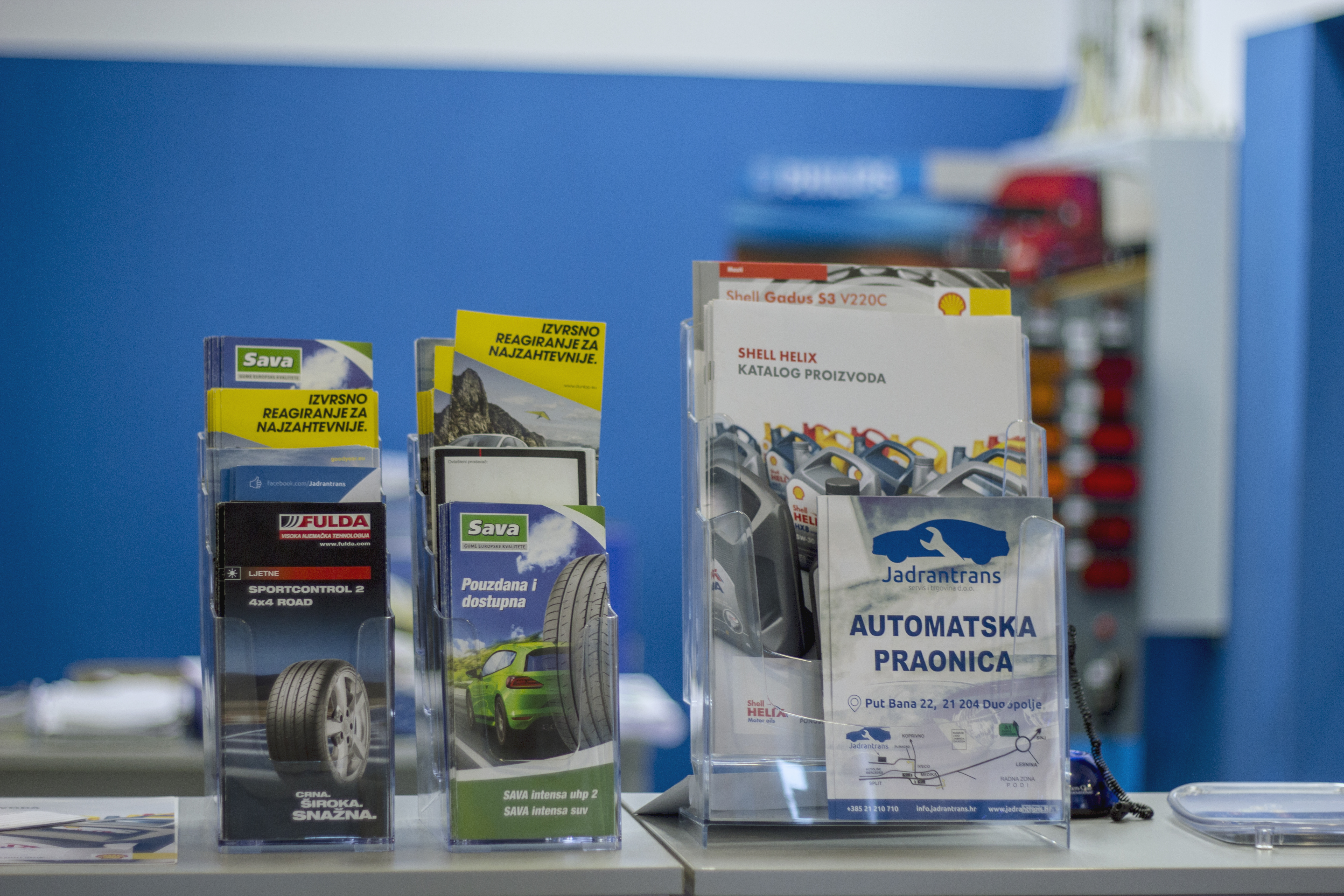 • Hotel za gume - U nedostatku prostora danas mnoge fizičke i pravne osobe nemaju adekvatno skladište za gume. Stoga Jadrantrans pruža kvalitetne usluge čuvanje guma na 750 m2 prostora.