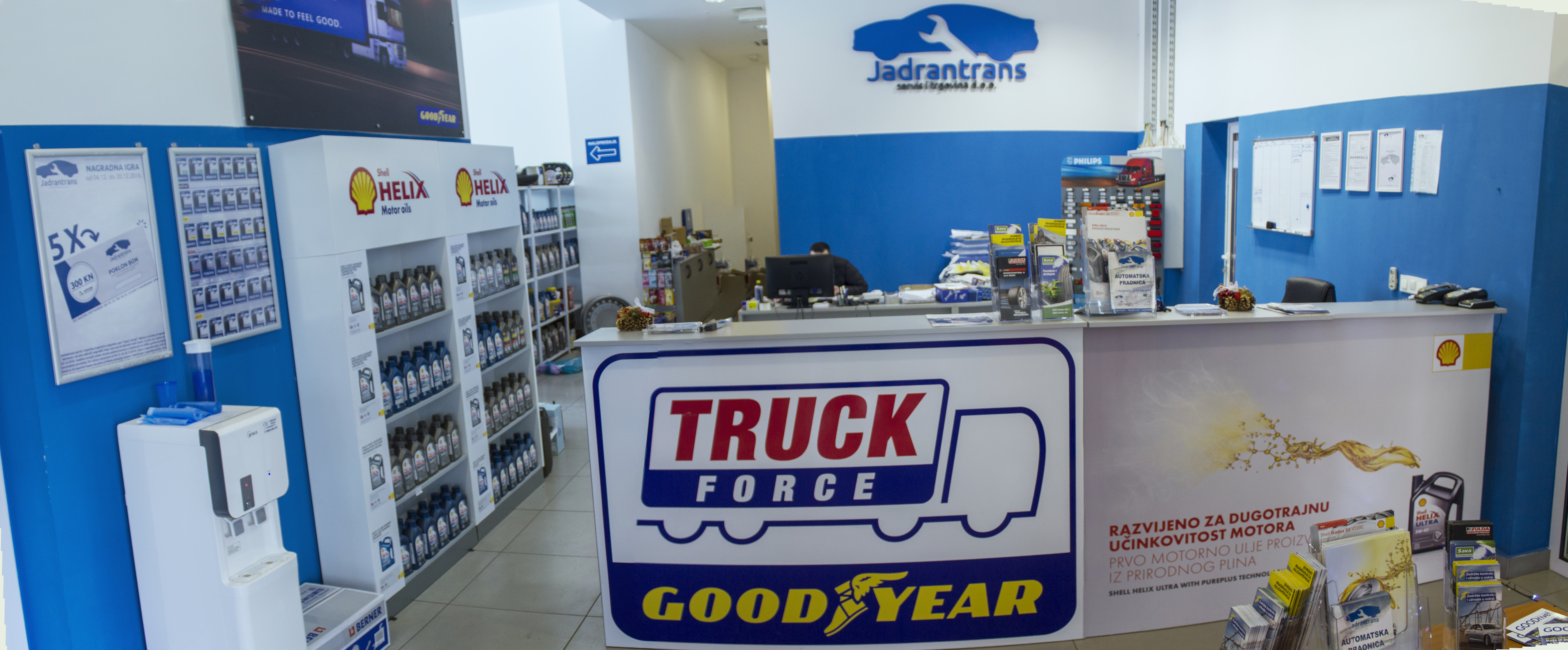 • Automehaničarska radionica – Nalazi se u središtu objekta na 850m2 prostora te se sastoji od 2 kanala dužine od 25m za kamionski program, 3 dizalice 3000kg za osobna vozila i 3 dizalice 4000kg za kombi vozila na kojima vršimo sve vrste popravka i servisa. Posjedujemo 3 montirke i 2 balansirke za izmjenu guma osobnih vozila kao i centriranje trapa osobnih vozila. Također koristimo montirku i balansirku za sve vrste kamionskih guma te optiku trapa kamiona. Punjenje klima osobnih vozila i kamiona te niz automehaničarskih i autoelektričarskih radnji ispunjava sve zahtjeve kupaca.